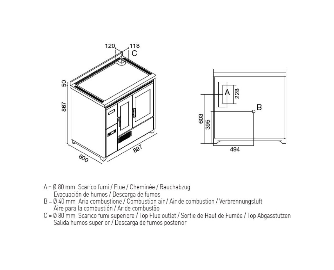 Eva Calòr NINA Cuisinière à granulés ventilée avec plaque de cuisson en métal – version encastrable – 7,2 kw – 160 m³ chauffable – noir