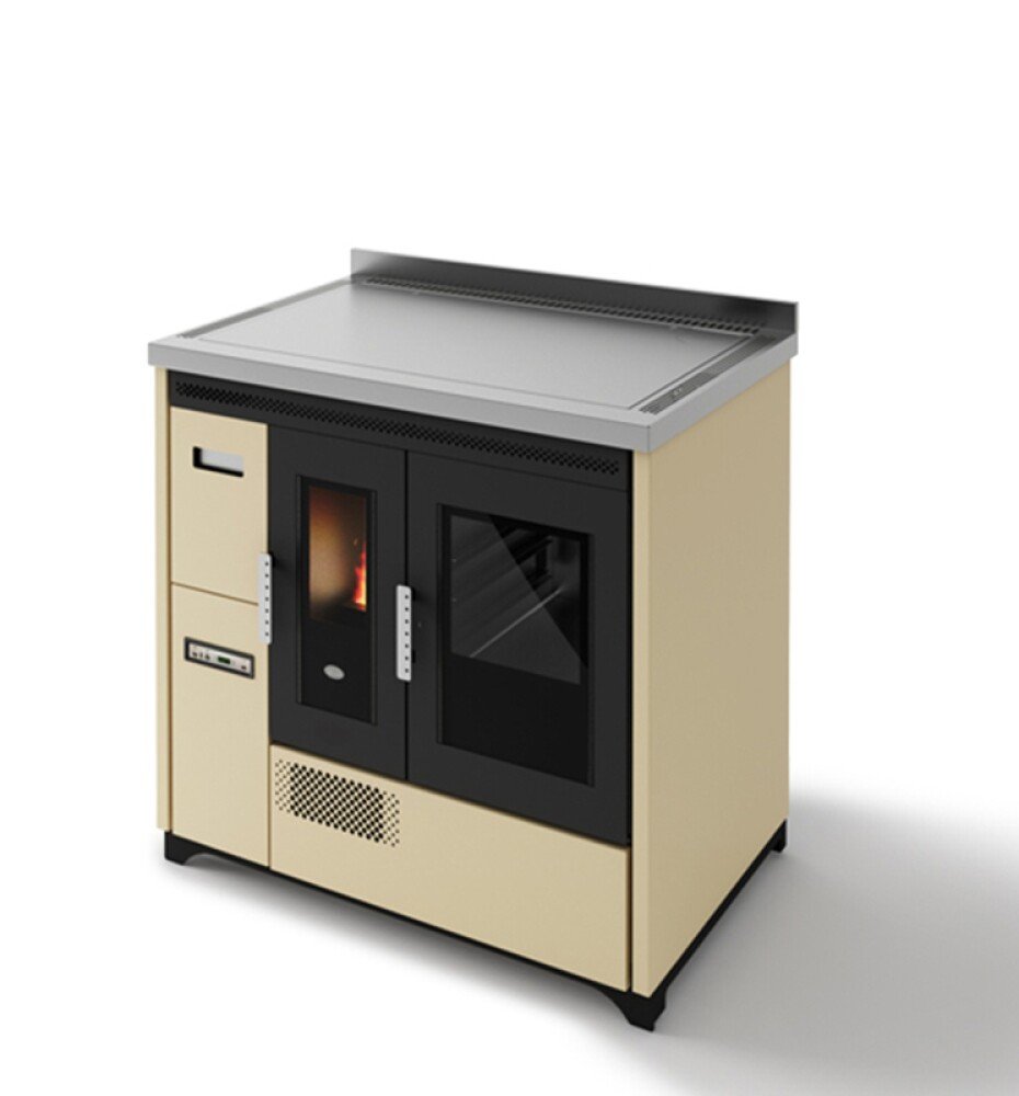 Eva Calòr ENRICA PLUS Poêle à granulés ventilé avec four – 7,2 kw – 160 m³ chauffable – ivoire