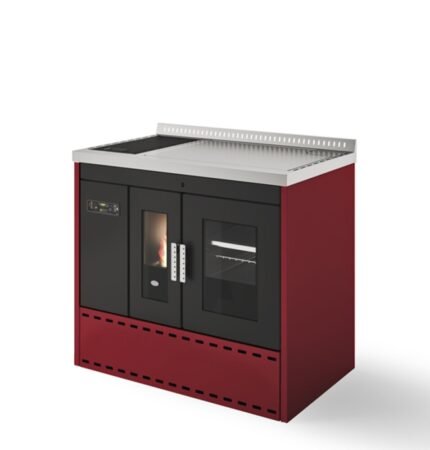Eva Calòr ISOTTA Thermocuiseur à pellets avec four 18,6 kw – 390 m3 chauffé – rouge
