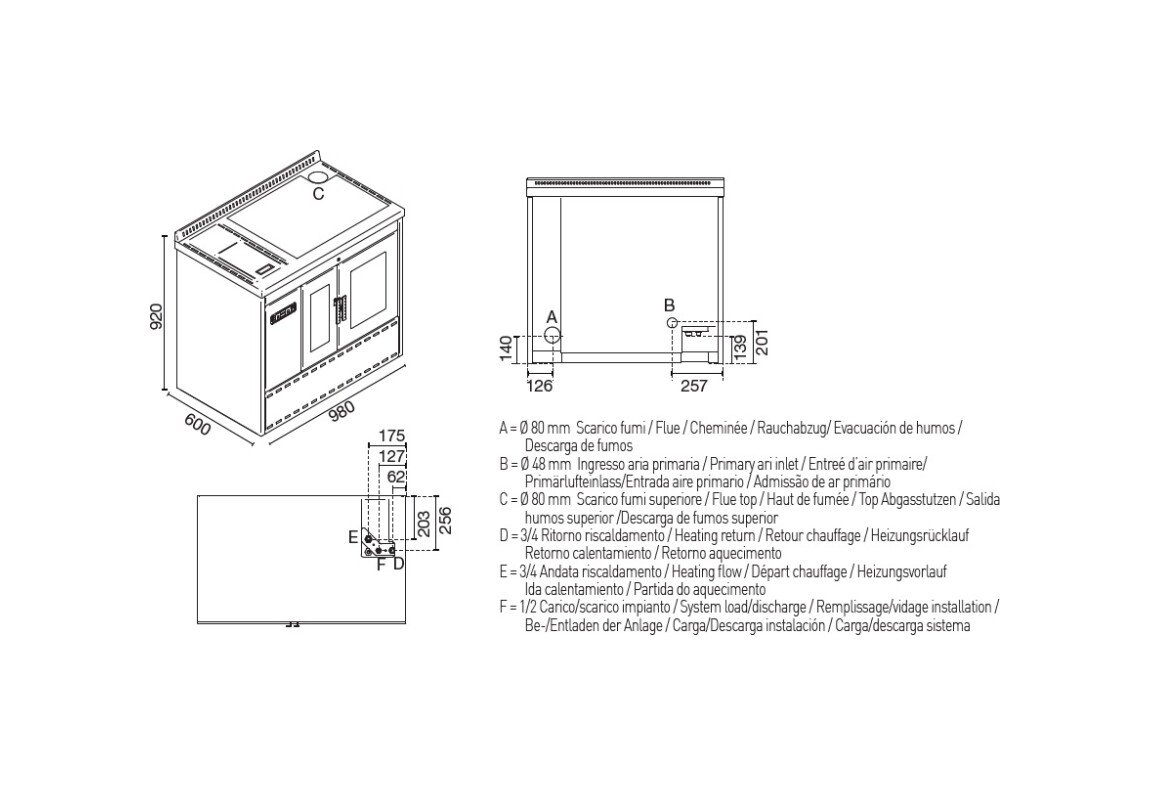 Eva Calòr ISOTTA Thermocuiseur à pellets avec four 18,6 kw – 390 m3 chauffé – rouge