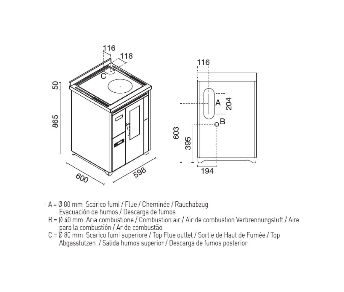 Eva Calòr ISOTTA Thermocuiseur à pellets avec four 18,5 kw – 390 m³ chauffable – noir