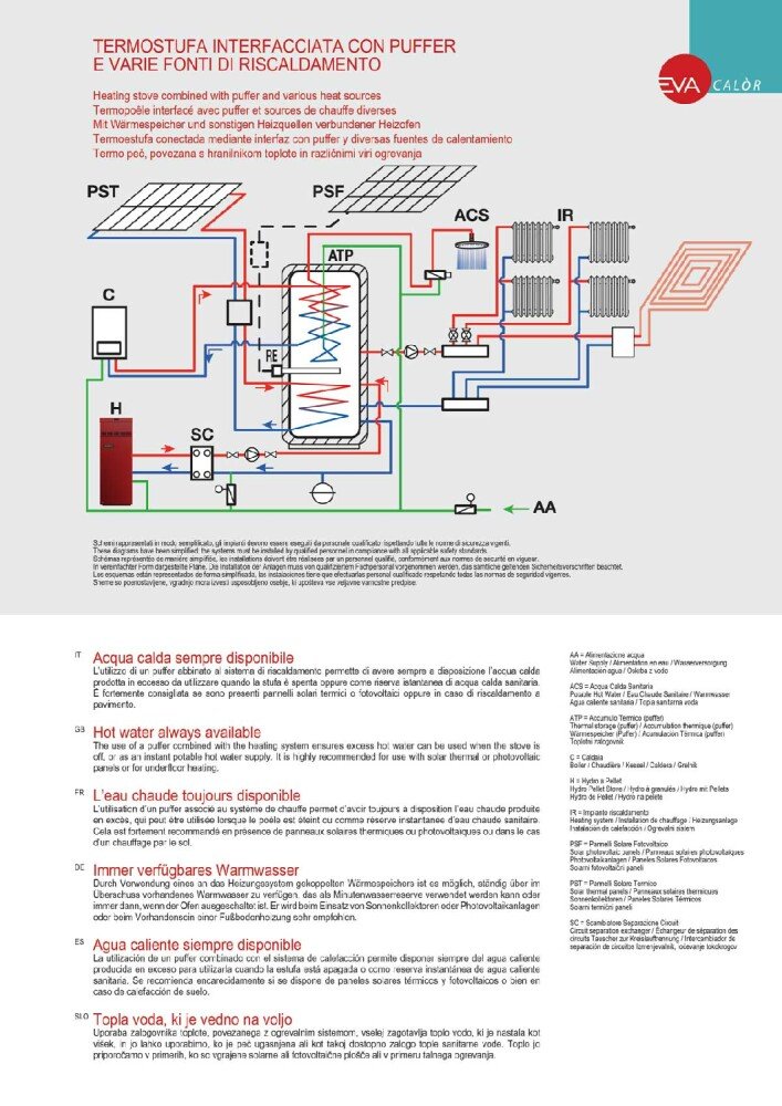 Eva Calòr PRO 20 HYBRID Chaudière à pellets classe 5 – avec pompe à chaleur – 20,1 kw – 460 m3 chauffé – noir gaufré