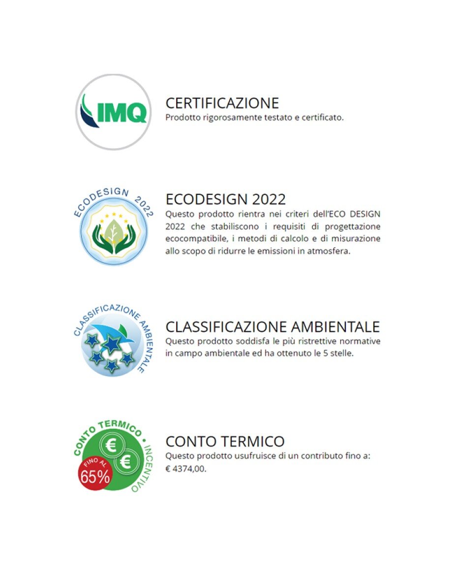 Caminetti Montegrappa MW22 AUP Gassa M Poêle à granulés autonettoyant pour chauffer l’eau, étanche à l’air et ventilé 21,3 kw – revêtement en majolique noire