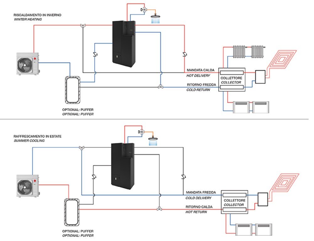 Eva Calòr SOLA 15 HYBRID Chaudière à pellets classe 5 – hermétique – avec pompe à chaleur et stockage technique 140 l – 15 kw – 320 m3 chauffé – noir gaufré