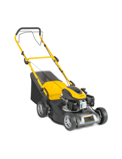Tondeuse Stiga Combi 553S, largeur de 51 cm, tractée. Roulements à billes sur toutes les roues. Guidon ergonomique réglable. Bac de 60 litres hybride. Moteur Stiga ST170 OHV.