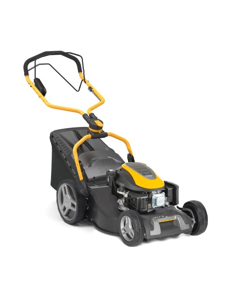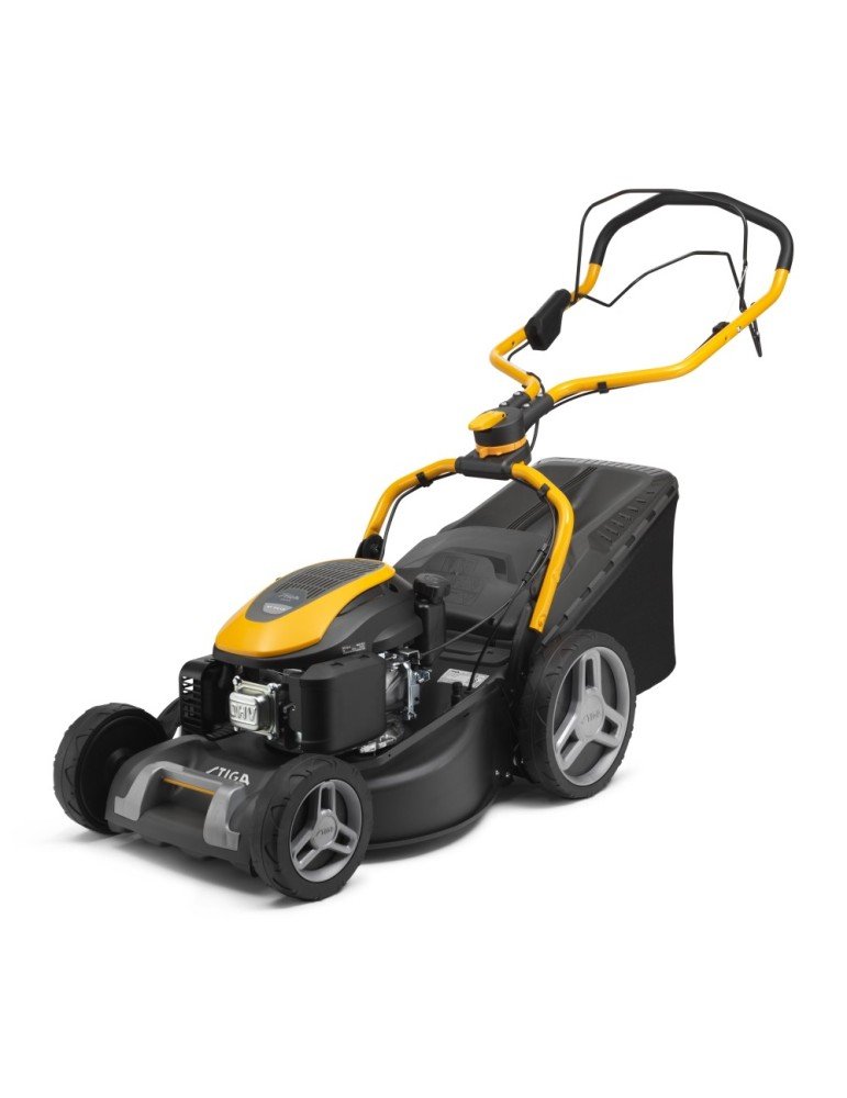 Tondeuse Stiga Combi 753SE, largeur de 51 cm, tractée. Roulements à billes sur toutes les roues. Guidon ergonomique réglable. Bac de 60 litres hybride. Moteur Stiga ST170 OHV Autochoke démarrage électrique .