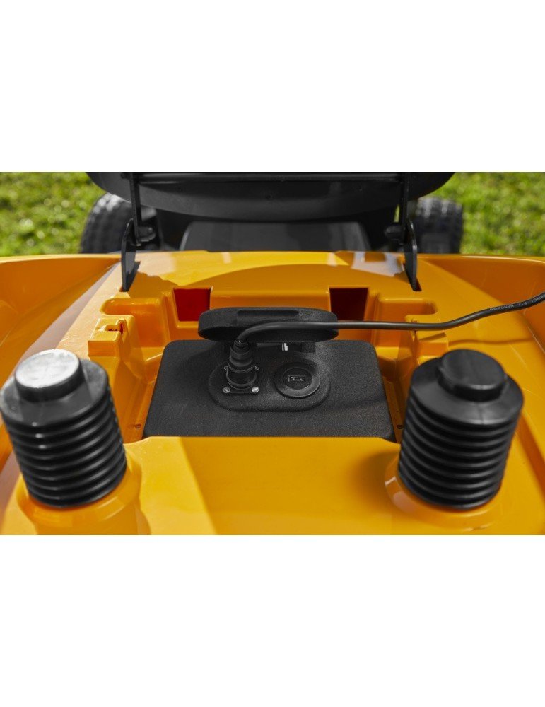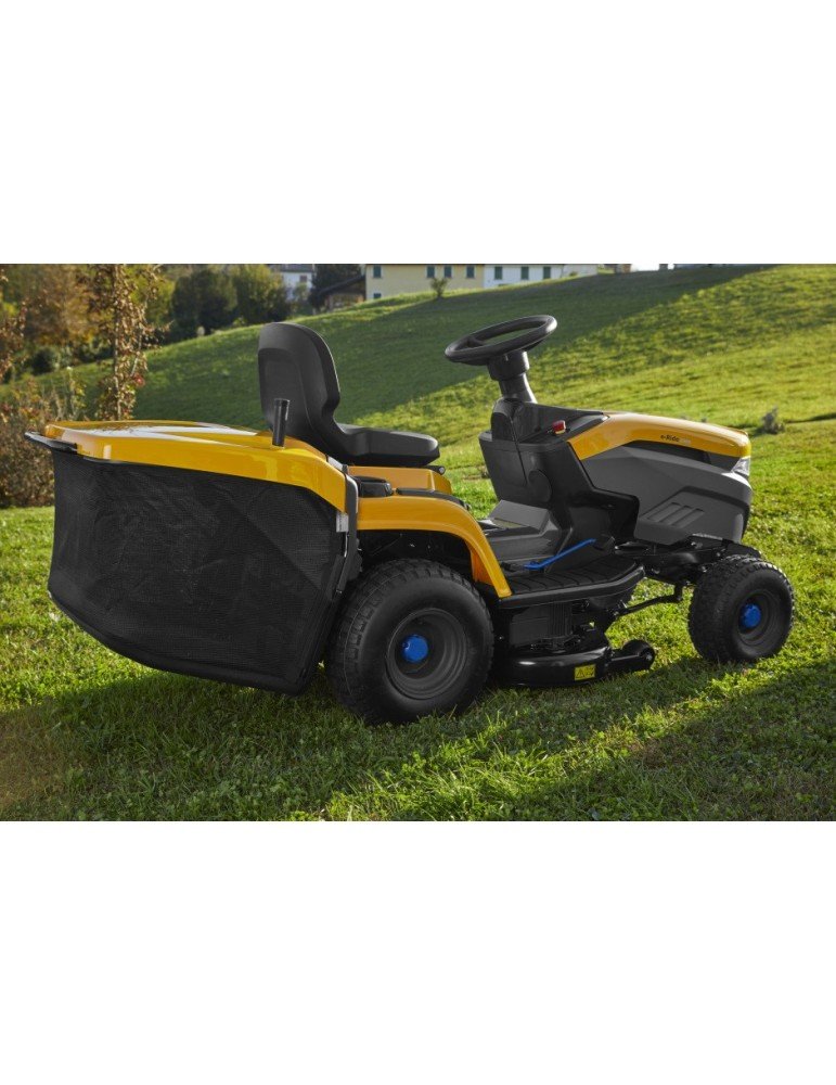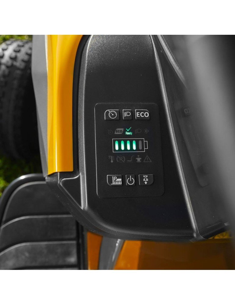 Le tracteur Stiga Estate 584e dispose d’un plateau de coupe de 84 cm avec réglage de la hauteur de coupe (25-80 mm) et de l’embrayage électrique pour embrayage de la lame. Contrôle de vitesse au pied.