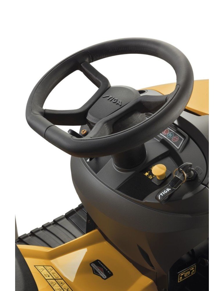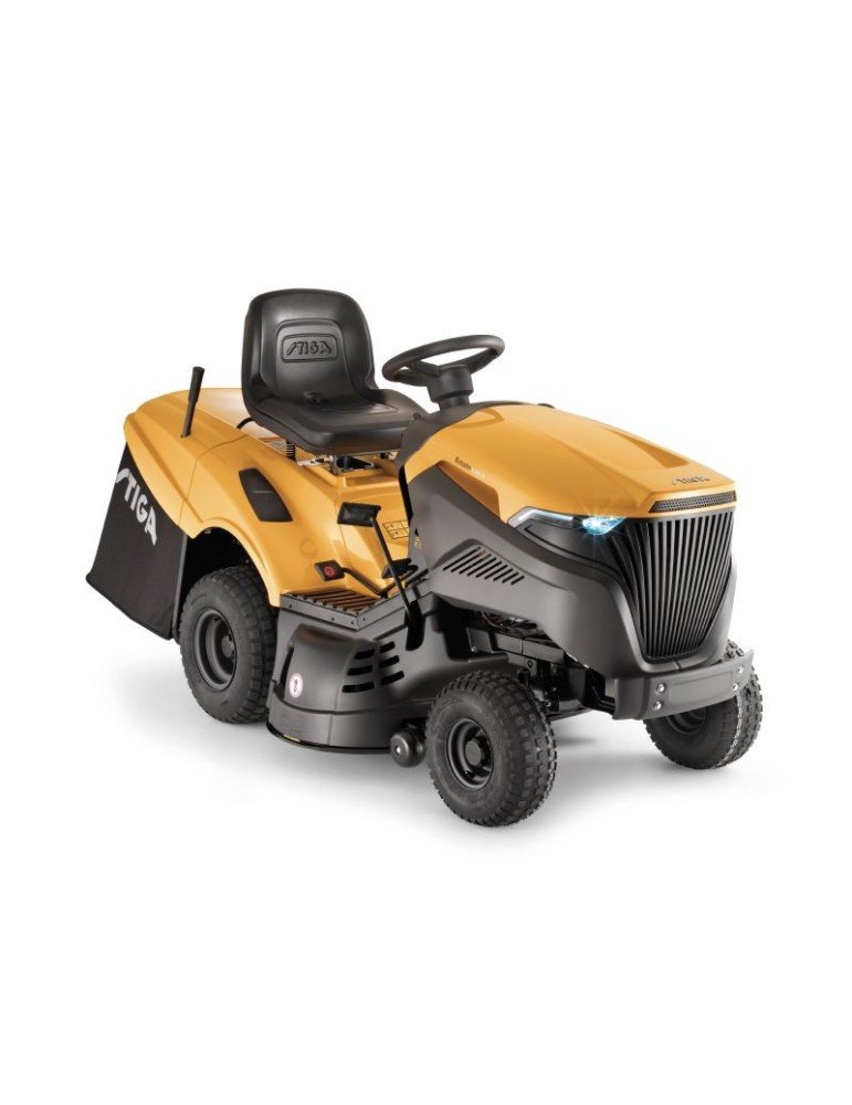 Le tracteur Stiga Estate 7102W est équipé du moteur Stiga bicylindre de 635cm3 avec plateau de coupe de 102cm. Avancement hydrostatique (HST) et le siège réglable pour plus de confort. Bac de ramassage de 290 litres.